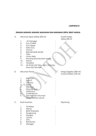 Contoh Format Sebut Harga Kantin 3 Pdf